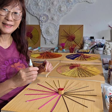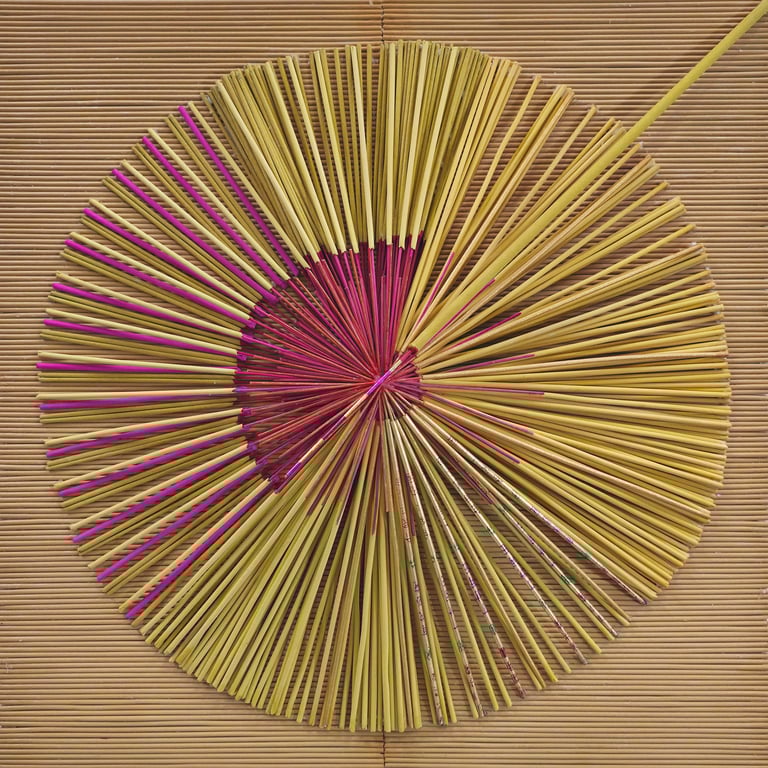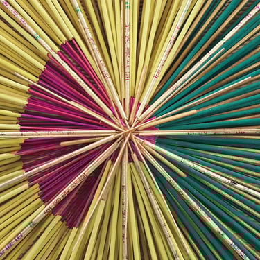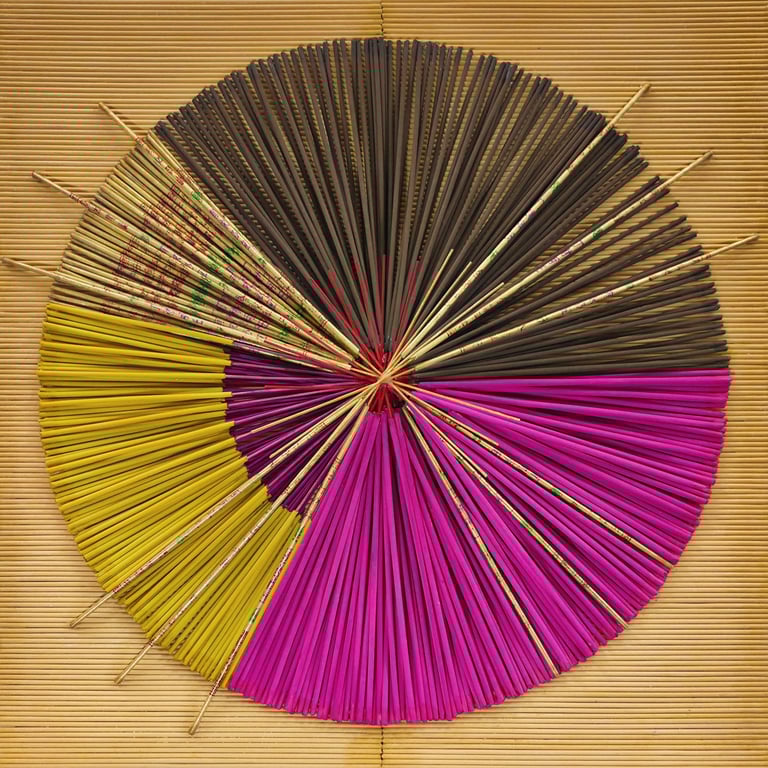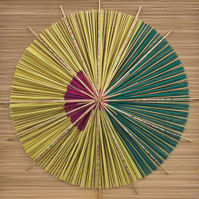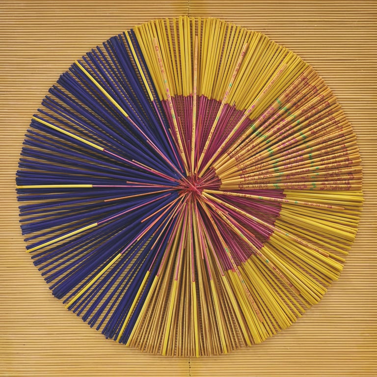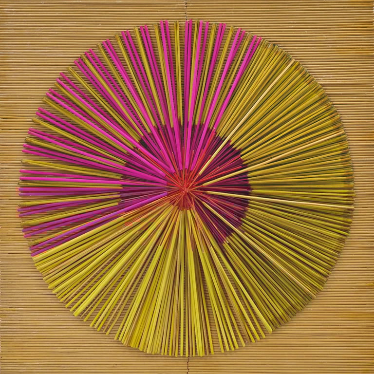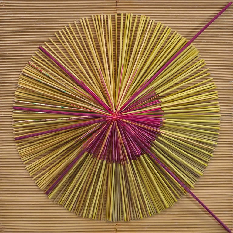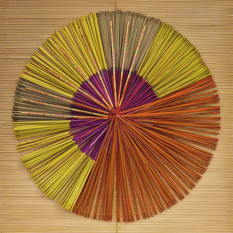 Individual: Approximately 700 incense sticks, glue, wood panel